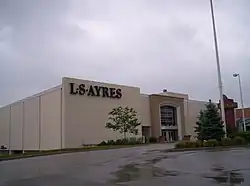 As urban populations shifted outward to suburban areas, Ayres moved closer to its customers by establishing branch stores in Indianapolis and Lafayette, Indiana.[23] In 1959, Ayres also opened a large warehouse facility and service center on Hillside Avenue in Indianapolis.[24] In 1965, a new branch store opened in the Greenwood Shopping Center, ten miles (16 km) south of the Indianapolis flagship store.[25] In 1966, Ayres opened a new branch store at Glenbrook Square in Fort Wayne, Indiana.[26] In addition to building new branch stores in Indiana, Ayres acquired a retail subsidiary, The John Bressmer Company in Springfield, Illinois, in 1958 and created Ayr-Way, a chain of self-service discount stores.[27] In 1969 Ayres expanded into Louisville, Kentucky, with the acquisition of Kaufman-Straus Company, a retail division of City Stores Corporation. The declining downtown Louisville store was not profitable and Ayres closed it within two years of its purchase. In 1973, Ayres installed an Ayr-Way discount store in the downtown Louisville location, but that also failed and closed in 1975. Two suburban Louisville locations were later merged into Ayres's Indianapolis operations.[28] The City Stores deal also included the acquisition of Wolf and Dessauer (W&D), a leading department store in downtown Fort Wayne, Indiana.[29] In the late 1960s, Ayres also entered the field of specialty retailing with the establishment of the Sycamore Shops and Cygnet Shops to cater to young adults.[30]