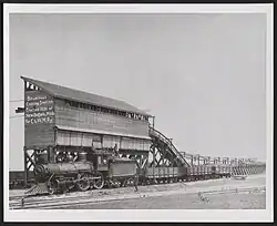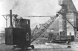 During this period, cranes and excavators shared many similarities. Huge steam shovels and steam cranes operated from railroad chassis. Workers laid rail tracks where the shovel was expected to work, then repositioned as required. Link-Belt Machinery quickly developed a steam-powered crane for wide-gauge rails. It used a clamshell-bucket for coal-handling. As shown in the photo at the right, the crane had a large house-like structure mounted on its rail chassis. The middle house-like structure held a steam engine like those used for locomotives.