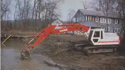 A number of these entrants came to excavators through the invention of the backhoe. These small-capacity excavators were initially mounted on the back of tractors, either farm or industrial varieties. This opened the excavator market to general contractors.[3]