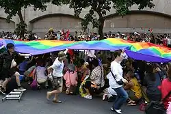 The first Taiwan Pride was held in Taipei in 2003. By 2015, when the event was attended by 80,000 participants, it had become the second-largest LGBT pride in Asia, behind Tel Aviv Pride in Israel, which has led many to refer to Taiwan as one of the most liberal countries in Asia as well.[10] By 2019, attendance had grown to 170,000 participants.[11][12]