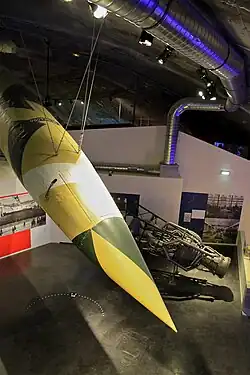 A Fieseler Fi 103R Reichenberg (a manned variant of the V-1) on display at La Coupole