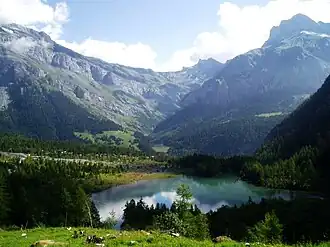 La Fava (centre-right) and Mont Gond (right) from Derborence