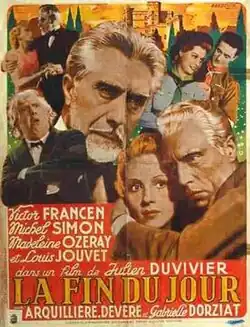 The End of the Day (French: La Fin du jour) is a 1939 French drama film directed by Julien Duvivier and starring Victor Francen, Michel Simon, Madeleine Ozeray and Louis Jouvet.[1] It was shot at the Epinay Studios in Paris and on location around the city as well as at the Château de Lourmarin in Provence. The film's sets were designed by the art director Jacques Krauss.