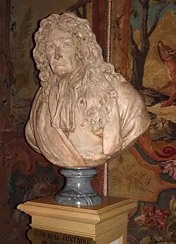 Jean de La Fontaine (UK: /ˌlæ fɒnˈtɛn, -ˈteɪn/,[1] US: /ˌlɑː fɒnˈteɪn, lə -, ˌlɑː foʊnˈtɛn/;[2][3] French: [ʒɑ̃ d(ə) la fɔ̃tɛn]; 8 July 1621 – 13 April 1695) was a French fabulist and one of the most widely read French poets of the 17th century. He is known above all for his Fables, which provided a model for subsequent fabulists across Europe and numerous alternative versions in France, as well as in French regional languages.