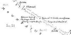 The creek that runs through the town is listed as Arroyo Ondo on several diseños on the Mexican land grants and as Arroyo Hondo on the 1856 Rancho Cañada de Raymundo map. Hondo is Spanish for 'deep'. The post office was listed as La Honda in 1880 and revised to Lahonda after 1895. The name was restored in 1905 owing to Z. S. Eldredge's efforts.[15]