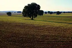 La Mancha (Spanish pronunciation: [la ˈmantʃa]) is a natural and historical region in the Spanish provinces of Albacete, Cuenca, Ciudad Real and Toledo. It is a fertile plateau (610 m or 2000 ft) that stretches from the mountains of Toledo to the western spurs of the Cuenca hills, bordered to the south by the Sierra Morena and to the north by the Alcarria.[1] The La Mancha historical comarca constitutes the southern portion of Castilla-La Mancha autonomous community and makes up most of the present-day administrative region.