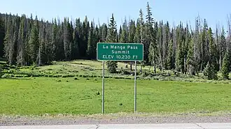 La Manga Pass, elevation 10,240 ft (3,120 m), is a mountain pass in the San Juan Mountains of Colorado. The pass is situated in Rio Grande National Forest.