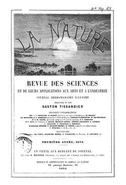 La Nature (English: Nature) was a French language magazine aimed at the popularization of science established in 1873 by French scientist and adventurer Gaston Tissandier. The magazine also received an enormous amount of time, effort, and contributions from his brother, Albert Tissandier.