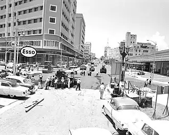 Calle 23rd passes by airline offices, cinemas, nightclubs, and office buildings. Many hotels, clubs and shops crowd this stretch, such as Hotel Tryp Habana Libre, the former Habana Hilton, and the Hotel Nacional de Cuba.[1] On the corner of 23rd and L is the Radiocentro CMQ Building and further down the block is the Edificio del Seguro Médico by Antonio Quintana Simonetti.[2]