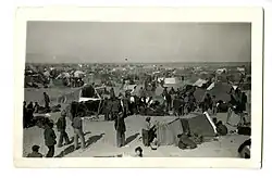 The largest refugee camp was Argelers concentration camp located on a beach near the Mediterranean Sea about 20 km (12 miles) north of the Spanish border. Argelers was envisioned as a camp to intern Spanish combatants, although several thousand women and children were in the camp population which reached more than 100,000. The first refugees arriving in Argelers found "nothing save the barbed wire." Argelers camp "is on a sandy expanse by the sea. There is no shelter of any sort from wind, sand, or rain. A bitterly cold wind from the mountains has produced a raging sandstorm...There is a great deal of dysentery probably from lack of good water and absence of sanitary arrangements."[14] Refugees built shacks and dug holes in the sand for shelter.[15]