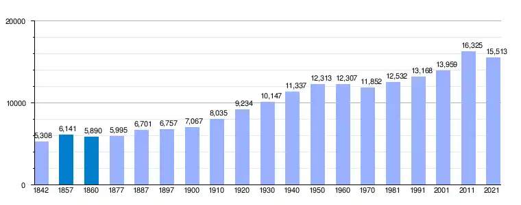 | demographic vertical bar chart of La Roda[8] between 1842 and 2021 |