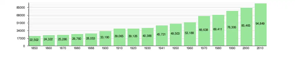 - ^ Swiss Federal Statistical Office STAT-TAB Bevölkerungsentwicklung nach Region, 1850-2000 Archived 2014-09-30 at the Wayback Machine (in German) accessed 29 January 2011