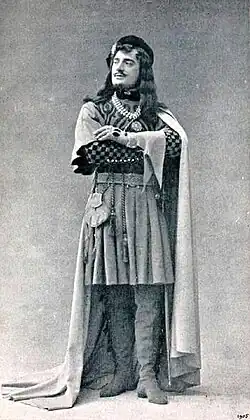 The opera's premiere was given by the Opéra-Comique at the Salle Favart in Paris on 23 December 1903. The production was directed by Albert Carré and conducted by André Messager. The United States premiere of the work was given at the Metropolitan Opera in New York City on 24 January 1919. That production was directed by Richard Ordynski, conducted by Pierre Monteux, and starred Geraldine Farrar as Orlanda, Hipolito Lazaro as Danièlo, Adamo Didur as Giorgio, Léon Rothier as César, and Flora Perini as Pantasilée.[1] Up to the Second World War the opera received 59 performances at the Opéra-Comique.[2] In its 1910 revival at the Opéra-Comique Marguerite Carré was Orlanda and Léon Beyle Danielo, Fernand Francell Giorgio and Félix Vieuille Sforza.[3]