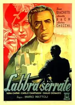 Sealed Lips (Italian: Labbra serrate) is a 1942 Italian mystery thriller film directed by Mario Mattoli and starring Fosco Giachetti, Annette Bach, Andrea Checchi and Vera Carmi.[1][2] It was shot at Cinecittà Studios in Rome. The film's sets were designed by the art directors Piero Filippone and Mario Rappini.