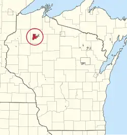 The Lac Courte Oreilles Tribe (Ojibwe: Odaawaa-zaaga'iganiing) is one of six federally recognized bands of Ojibwe people located in present-day Wisconsin. It had 7,275 enrolled members as of 2010.[1] The band is based at the Lac Courte Oreilles Indian Reservation in northwestern Wisconsin, which surrounds Lac Courte Oreilles (Odaawaa-zaaga'igan in the Ojibwe language, meaning "Ottawa Lake"). The main reservation's land is in west-central Sawyer County, but two small plots of off-reservation trust land are located in Rusk, Burnett, and Washburn counties. The reservation was established in 1854 by the second Treaty of La Pointe.[2]