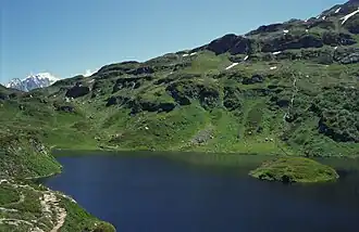 Lac de Pormenaz is an alpine lake in the Passy National Nature Preserve (Réserve naturelle nationale de Passy) of the Haute-Savoie department of France. Its surface area of 4.4 ha is at an elevation of 1945 m.
