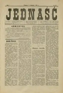 Simultaneous use of the digraphs ''sz/cz'' and their replacement diacritics ''š/č'' in the same text in a Newspaper Jednaść.