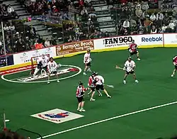 ![]() A lacrosse game between Canada and the United States at the 2008 Men's Under-19 World Lacrosse Championships | |