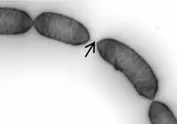 Lacticaseibacillus rhamnosus (previously Lactobacillus rhamnosus[1]) is a bacterium that originally was considered to be a subspecies of L. casei, but genetic research found it to be a separate species in the L. casei clade, which also includes L. paracasei and L. zeae.[2][3] It is a short Gram-positive homofermentative facultative anaerobic non-spore-forming rod that often appears in chains. Some strains of L. rhamnosus bacteria are being used as probiotics, and are particularly useful in treating infections of the female urogenital tract, most particularly very difficult to treat cases of bacterial vaginosis (or "BV").[4] The species Lacticaseibacillus rhamnosus and Limosilactobacillus reuteri are commonly found in the healthy female genito-urinary tract and are helpful to regain control of dysbiotic bacterial overgrowth during an active infection. L. rhamnosus sometimes is used in dairy products such as fermented milk and as non-starter-lactic acid bacterium (NSLAB) in long-ripened cheese.[5] While frequently considered a beneficial organism, L. rhamnosus may not be as beneficial to certain subsets of the population; in rare circumstances, especially those primarily involving weakened immune system or infants, it may cause endocarditis.[6] Despite the rare infections caused by L. rhamnosus, the species is included in the list of bacterial species with qualified presumed safety (QPS) status of the European Food Safety Agency.[7]