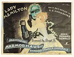 Lady Hamilton is a 1921 German silent historical film directed by Richard Oswald and starring Liane Haid, Conrad Veidt and Werner Krauss.[1] The film depicts the love affair between the British Admiral Lord Nelson and Lady Emma Hamilton. It was based on two novels by Heinrich Vollrath Schumacher. A copy of the film exists in a Russian film archive.[2]