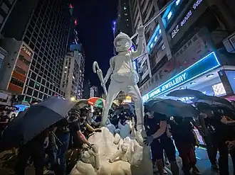 ![]() Lady Liberty Hong Kong during a demonstration on 4 October 2019. | |