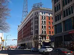 Buildings flanking the square include the Liberty Building,[11][12] the Main Court Building,[12] 10 Lafayette Square,[12][13] the Rand Building (14 Lafayette Square),[12][13] and the Buffalo & Erie County Public Library (One Lafayette Square).[12] The south side of the square hosts two historic buildings: the 300-room Lafayette Hotel, designed by Louise Blanchard Bethune in 1904; and the Brisbane building, designed by Milton Earl Beebe and erected by James Mooney and James Brisbane in 1894–5. The corner north of the current library and northeast of the square once hosted the Buffalo Savings Bank building that was demolished in 1922.[14]