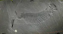 | Tatelt Formation | 515 Ma | High Atlas, Morocco | A layer in this formation has produced some of the most well-preserved trilobites ever discovered, with preserved internal organs, feeding structures, and articulated appendages. The trilobites were likely rapidly buried and preserved by a volcanic eruption.[51] | ![]() |