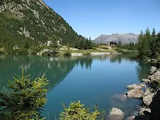 The lake is a popular hiking and climbing destination.[1] The Club Alpino Italiano maintains a mountain refuge hut at the lake, the Rifugio Sandro Occhi all'Aviolo.[2]