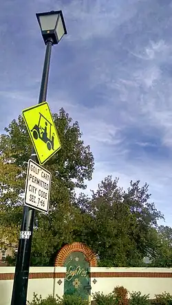 In addition to bordering the Wildlife Refuge, Lago Mar has three family parks within its borders where residents may enjoy playgrounds, picnics, or tennis courts. Bicycling, jogging and walking are other common activities on both Nimmo Trail and the "Lago Mar Loop."[14] Many residents frequent the local Hell's Point Golf Club,[15] which is at the southeast end of the neighborhood. Golf carts are permitted to be driven on all streets in Lago Mar south of Nimmo Trail.