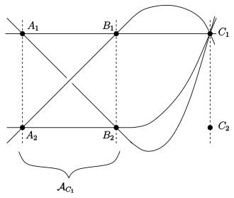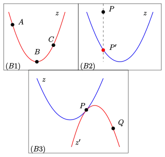 - B3: For any cycle , any point and any point that is not parallel to there is exactly one cycle through with ,