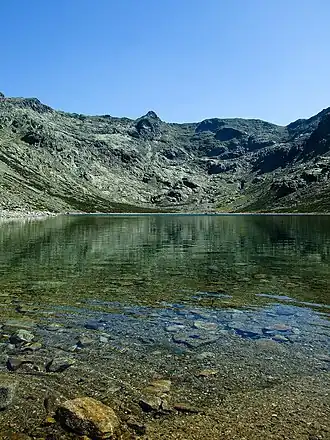 - ^ Pico Almanzor, to the east, is the highest peak in the Sierra de Gredos at 2,592 metres (8,504 ft).[3]
