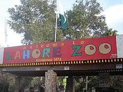 Lahore Zoo (Punjabi: لہور چڑیا گھر, Urdu: لاہور چڑیا گھر) in Lahore, Punjab, Pakistan, established in 1872, is one of the largest zoos in Pakistan.[4] It is currently managed by the Forest, Wildlife and Fisheries department[5] of the Government of Pakistan. Today the zoo houses a collection of about 1378 animals of 135 species.[1] Lahore Zoo was the host of the fifth annual conference of SAZARC in 2004.[3]