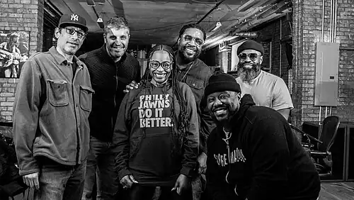 ![]() Laiya St. Clair (middle) with Team Supreme, photographed with Black Thought (guest), Photo by Ginny Suss, 2023 | |