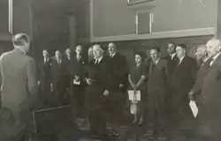 - ^ Magyar Nemzet 03 June 1947 The democratic community party of the Jewish unity organized a flag-raising rally at the City Theater on Sunday. With this, the religious community election struggle began. The huge theater was packed with interested people. Zionist leaflet throwers tried to disrupt the rally. But that didn't work out. Lajos Stockler stated "According to him, the leadership of the religious community cannot afford the luxury of fighting for particular interests when it has to solve the crucial problems of the Jewish university. You cannot deny the results achieved in two years, the reconstruction of Jewish institutions, but you cannot occupy them with a Trojan horse either. He asked them to honor the honest work they had done in the past years"
