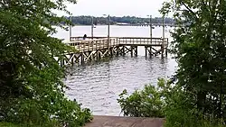 Lake Bob Sandlin is located on Big Cypress Creek. It was impounded in 1977 with the construction of the Fort Sherman Dam. Lake Bob Sandlin is named after Bob Sandlin, a major proponent of the lake, who was a local businessman, civic leader, and president of Titus County Fresh Water Supply District No. 1.[4] A formal dedication ceremony occurred on June 25, 1978.[5]