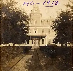 On October 2, 1890, Lake Charles College opened its first term, its main building completed at a cost of nearly $20,000. It was a three-story, 14-room building sized 55 by 85 feet.[10] It offered both a collegiate program and a preparatory program, roughly equivalent to a high school of the time; throughout its existence, the vast majority of students were enrolled in the preparatory program.[11] Roughly a third of its students came from the children of recent immigrants from the North.[12]