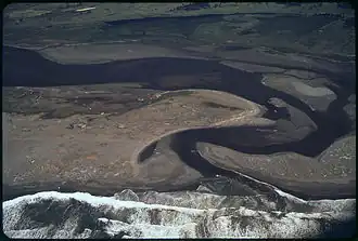 Lake Earl has two principal lobes separated by "the Narrows." The smaller lobe, which is also closer to the ocean and the sand bar breach site, is called Lake Tolowa or Lake Talawa by the California Department of Fish and Game.[4] The larger lobe of the lagoon is Lake Earl. Lake Earl is mostly freshwater while Lake Tolowa has a higher salt content.[5] As opposed to an estuary, which is typically open to the ocean and fresh water constantly, a lagoon seals up seasonally and fills with a predominance of fresh water. The lagoon, located on the coast of California about 11 miles (18 km) south of the border with Oregon,[6] is manually breached when the water levels rise to 8 feet (2.4 m) to 10 feet (3.0 m) mean sea level (MSL). Though references to levels on USGS charts are made relative to Mean Lower Low Water (MLLW) leading to difficulty over the management of the lake's levels.[7] If allowed to breach naturally, the water surface would rise to 12 feet (3.7 m) to 14 feet (4.3 m).[1] At 10 feet (3.0 m) MSL there is approximately 4,900 acres (20 km2) of water surface in the lagoons and 4,950 acres (20.0 km2) of wetlands; at 8 feet (2.4 m) MSL, the surface waters area is approximately 4,200 acres (17 km2). At 2 feet (0.61 m) MSL, the combined surface area is a mere 2,191 acres (8.87 km2) of open water [8] surrounded by 2,000 acres (8.1 km2) of wetlands.