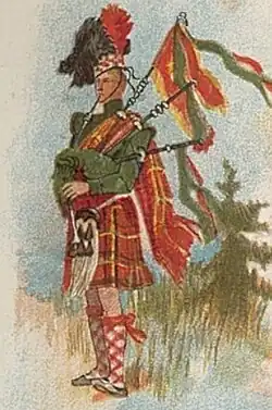 The piper that she referred to was Peter Bruce who came as a free settler from Scotland in about 1840. He was part of a family whose members were renowned for their ability to play the bagpipes and are mentioned in the texts on the history of piping. His father was Alexander Bruce (1771-1840) of Glenelg, Scotland who had been taught by the famous MacCrimmon pipers and his uncle John Bruce (1775-1847) was the piper to Sir Walter Scott. It is also mentioned in the texts that two of Alexander's sons Peter and John, who also played the bagpipes very well, immigrated to Australia.[7]