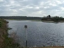 Lake Lafayette is fed by Lafayette Creek, draining a significant portion of northeastern Tallahassee; it has a drainage basin of approximately 10 sq mi (26 km2).[2] The creek flows into a small reservoir upstream from Lake Lafayette, impounded by a weir at the Weems Road bridge, then continues into Upper Lake Lafayette. Lower Lake Lafayette formerly flowed into the St. Marks River underground, and in sheet flow after heavy rains; it currently is connected to the river by a canal.[1]