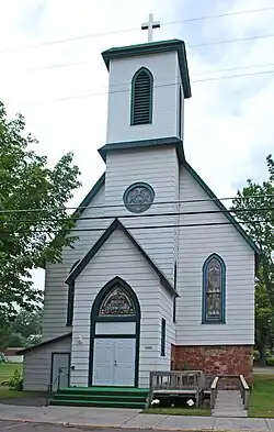 The Methodist Episcopal Church (1893) at 53237 N Avenue is a Gothic Revival front-gabled church on a sandstone foundation. It has a square steeple and Gothic arched windows.[2]
