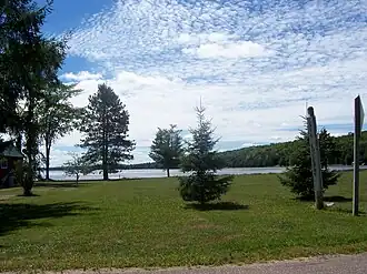 Lake Lucerne is located near Crandon in Forest County, Wisconsin, United States.[2] There is a boat landing on the southeast shore of the lake and a restaurant (Waters Edge) on the west shore. This restaurant performs a water ski show during the summer months. Summer homes and cottages surround the lake. There is a large, uninterrupted stretch of water on the north half of the lake. On the southern half, there is a large cluster of islands, the largest having a sand bar that is popular with swimmers. The southern tip of the lake is dotted with bays and water meadows.[3]