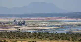 Magadi township lies on the lake's east shore, and is home to the Magadi Soda factory, owned by Tata India since December 2005. This factory produces soda ash, which has a range of industrial uses.