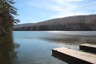 Lake Marvin is located in northern Floyd County in a basin known as The Pocket. The lake is situated between Horn Mountain and Mill Mountain, two ridges in the Ridge-and-Valley Appalachians. Calhoun is located about 8 miles (13 km) to the southeast, while Rome is located 20 miles to the south-southwest.[4] The lake is surrounded by the Johns Mountain Wildlife Management Area and the Chattahoochee-Oconee National Forest.[2]