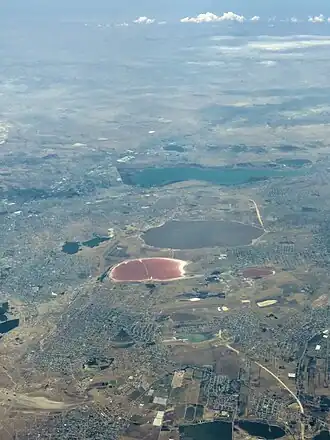 The overall area of the lake is 10 km2.[1] Large volumes of chloride and sulphate are concentrated in ion composition of the water.[2] A new salt making plant was built here in 2010 for production of 2 Azeri brands of salt. The estimated amount of recoverable salt is 1,735 million tons. It is available in liquid (water) and clay forms.