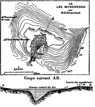 The French explorer Gaston Méry visited the lake in 1893 after a long period of drought, and found it completely dry.[7] Méry was the first French explorer to visit the region since the massacre of the second Flatters expedition. He and Guilloux were accompanied by five local Algerians. At Lake Menghough Méry met with some of the Kel Ajjer chiefs. [8]