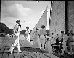 Passengers disembarking at the Minnetonka Yacht Club, ca. 1900