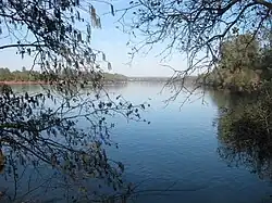 Surrounding this narrow lake are foothills, plateaus, cliffs and river canyons.[3] A dense 14-mile-long (23 km) riparian ecosystem encircles the lake.[3] The Lake Natoma Bluffs stand 300 feet (91 m) and line the lake from Black Miners Bar to Mississippi Bar.[4]