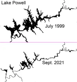 - ^ Rachel Ramirez (21 March 2022). "Not only is Lake Powell's water level plummeting because of drought, its total capacity is shrinking, too". CNN. Retrieved 2022-08-04.