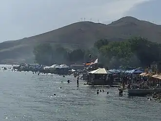 The Armenian government pledged to "reduce the growing commercialization of rest at Lake Sevan that makes it unaffordable for most citizens struggling to find other beach options during hot Armenian summers."[79] In 2011 the government established public beaches in the Sevan National Park's recreational zone. The first two public beaches were opened in July. Some 100,000 people visited the public beaches in summer of 2011. The beaches have free parking space, children's and sports playgrounds, toilets, medical aid stations, and rescue services. They are also equipped with beach couches.[80] By 2014, the number of public beaches reached 11. Some 200,000 people took holiday there in 2014.[81]