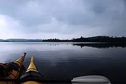 Lake Temagami, formerly spelled as Lake Timagami, is a lake in Nipissing District in northeastern Ontario, Canada, situated approximately 80 km north of North Bay. The lake's name comes from dimii-agamiing "tih-MEE-uh-guh-MEENG", which means "it is deep water by the shore" in the Ojibwa language.